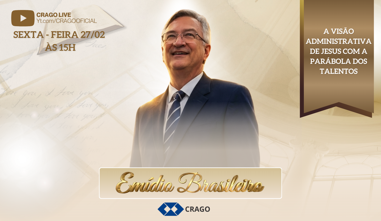 Para guiar esta reflexão, recebemos uma das mentes mais brilhantes da atualidade: o Prof. Dr. Emídio Brasileiro. Jurista com doutorado pela Universidade Autónoma de Lisboa e pós-doutor em Ciências da Religião pela Universidade Mackenzie. Educador e autor de 30 obras traduzidas internacionalmente, o Dr. Emídio traz consigo a bagagem de milhares de conferências proferidas ao redor do mundo para nos ensinar que o segredo da gestão reside na união entre a competência técnica e o amor ao que se faz.