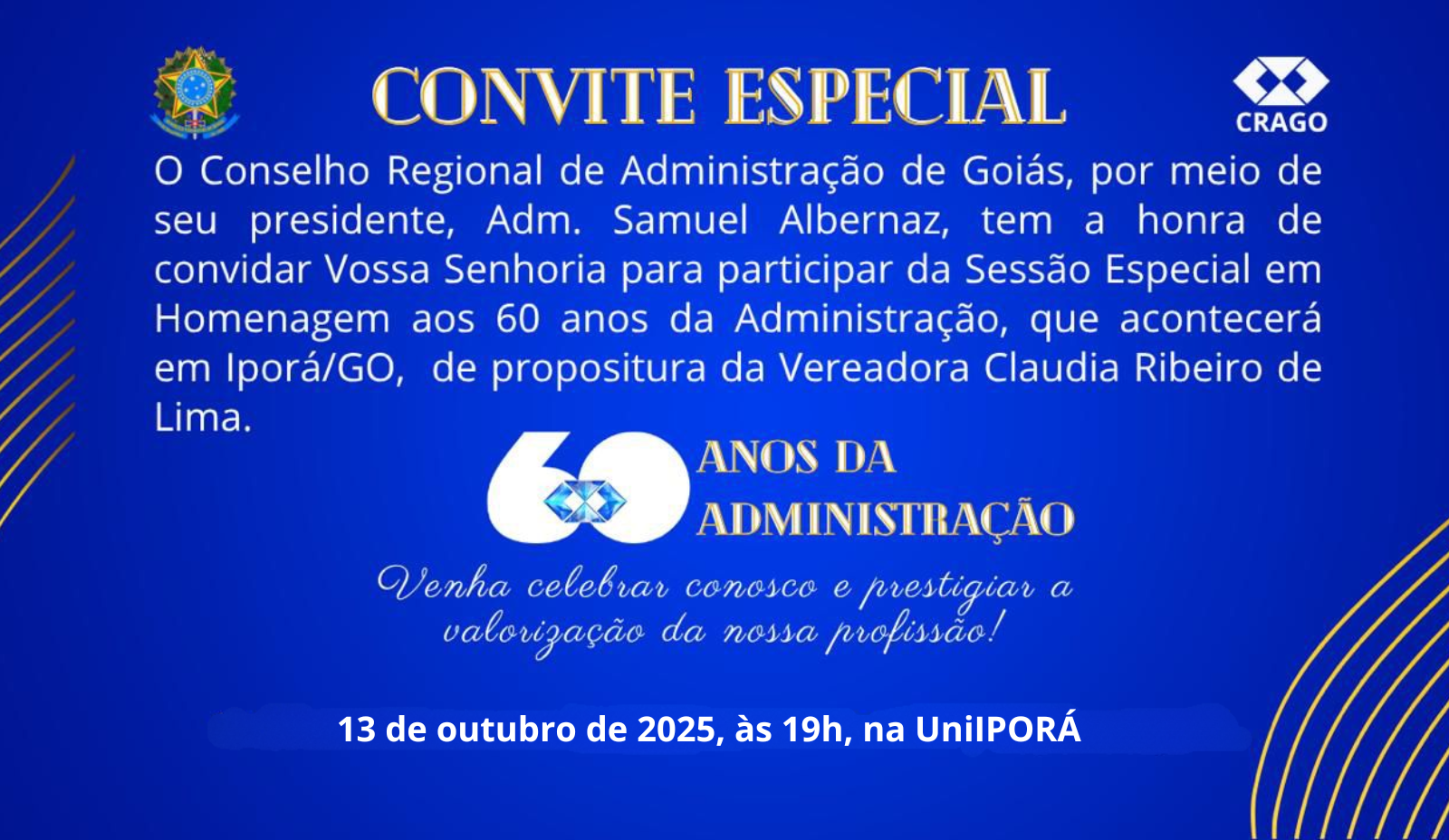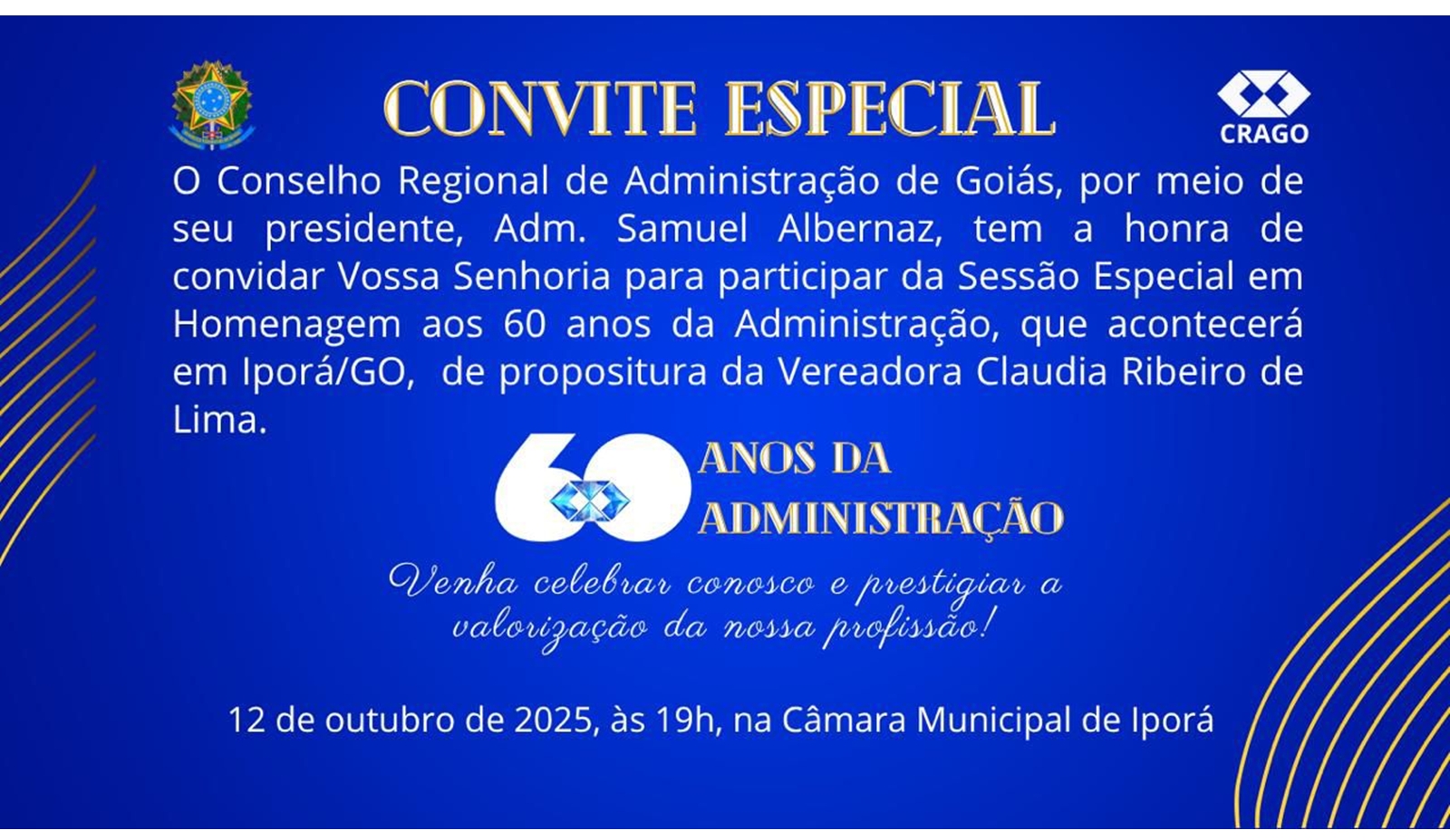 O presidente do CRAGO, Adm. Samuel Albernaz, reforça o compromisso da autarquia com a valorização da profissão e a ética na Administração pública.