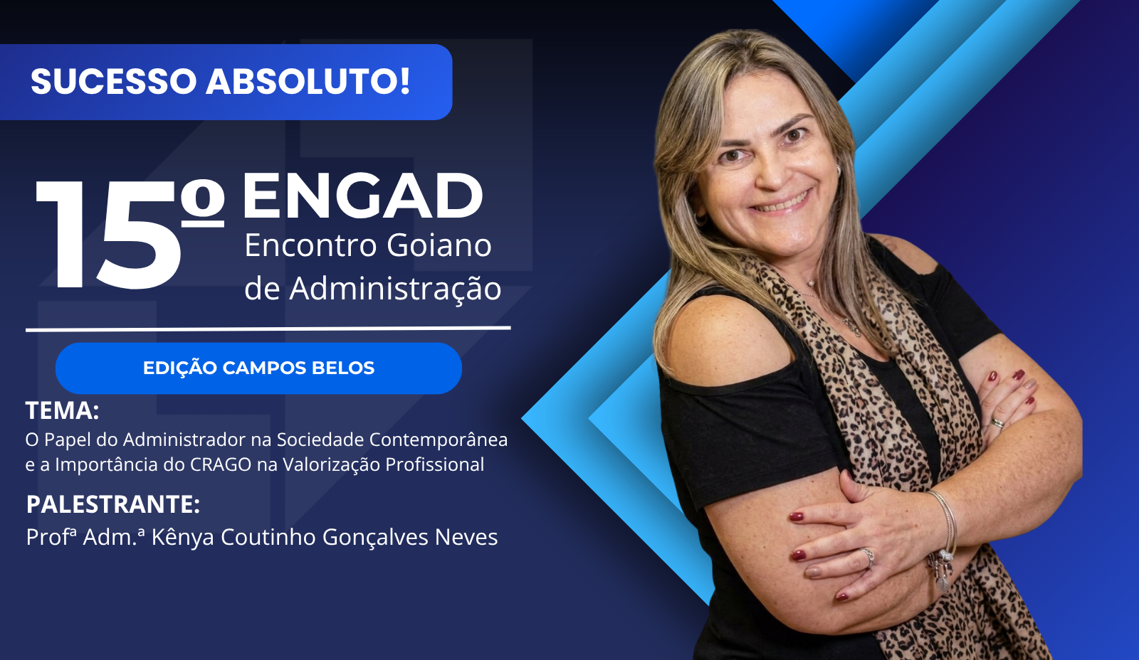Campos Belos sediou a 15ª edição do ENGAD - Encontro Goiano de Administração foi revestido de total sucesso, aconteceu no dia 30 de março, no auditório do Instituto Federal Goiano, com o tema "O Papel do Administrador na Sociedade Contemporânea e a Importância do CRAGO na Valorização Profissional". A palestra foi ministrada pela vice-presidente, Admª Kênya Coutinho Gonçalves.